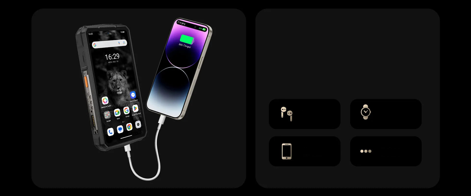 *Разработанный протокол беспроводной зарядки в лаборатории Ulefone позволяет достичь максимальной мощности в 50Вт. Фактическая мощность зарядки будет разумно изменяться в зависимости от различных сценариев, пожалуйста, обратитесь к фактическому использованию.