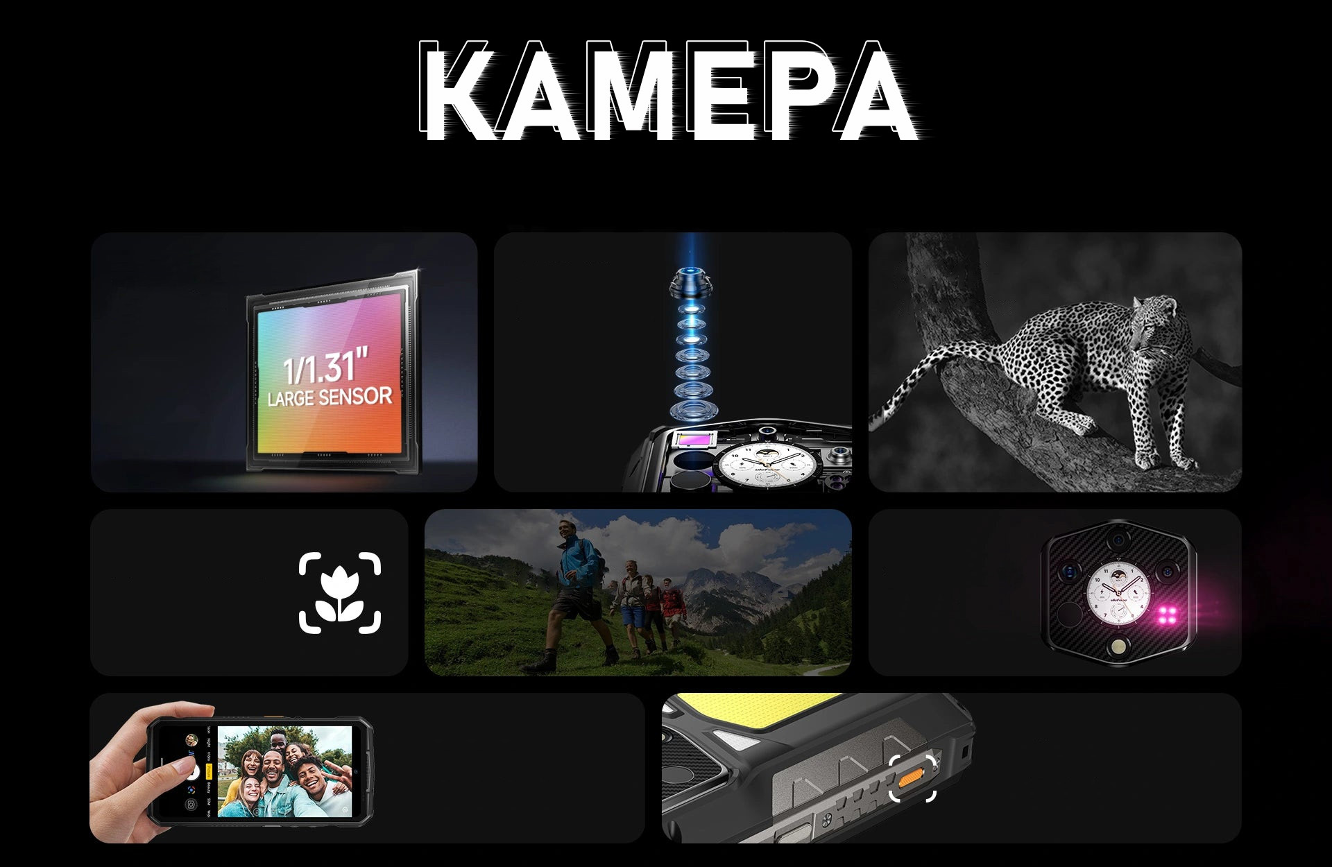 Ulefone Armor 29 Pro Thermal обладает углом обзора в 117.3° и автофокусом, что позволяет осуществлять макросъёмку. Грандиозные пейзажи или мельчайшие объекты выглядят в кадре потрясающе.